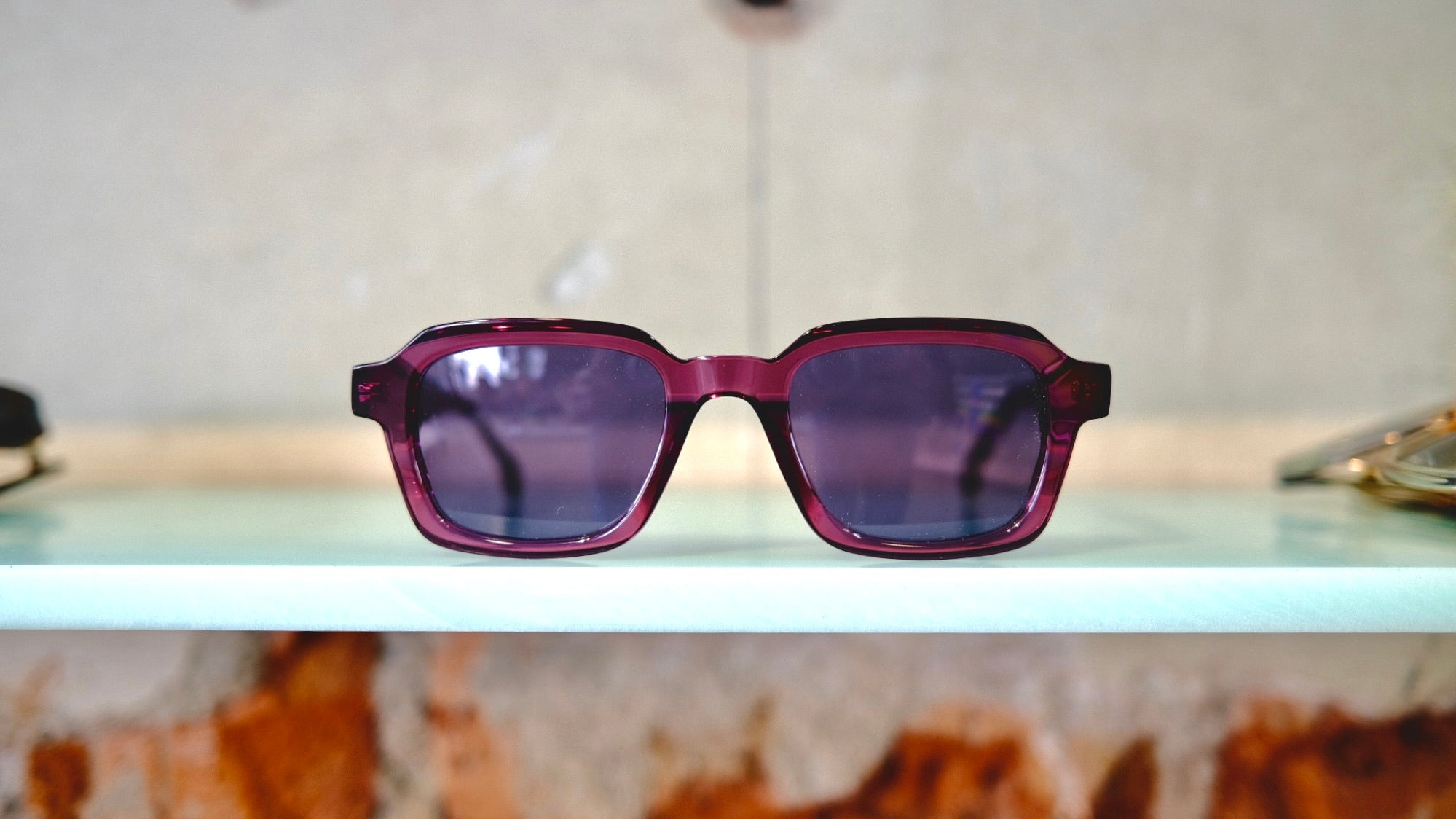 Das kleine Pariser Label Waiting For The Sun, gegründet von Antoine und Julien, hat viel zu bieten. Es zeigt nicht nur eine ganze Reihe von erfrischenden Brillenformen, sondern hat auch einen eigenen organischen Kunststoff entwickelt. Dieser bietet die gleichen mechanischen Eigenschaften wie Acetat, ist aber völlig ölfrei.